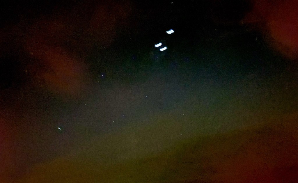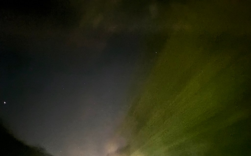 I thought the days of seeing these lights dance across the sky were over when I moved to the United States. Now fast forward to last Friday. I was lying in bed and saw someone post a picture in the Ardmore FACEBOOK group of a picture on Friday. We quickly thought it was not for real. However, I was determined to see for myself, so I flew to the driveway. Nope nothing. Out came my husband and we saw hint of pink yet we’re sure it was a reflection.