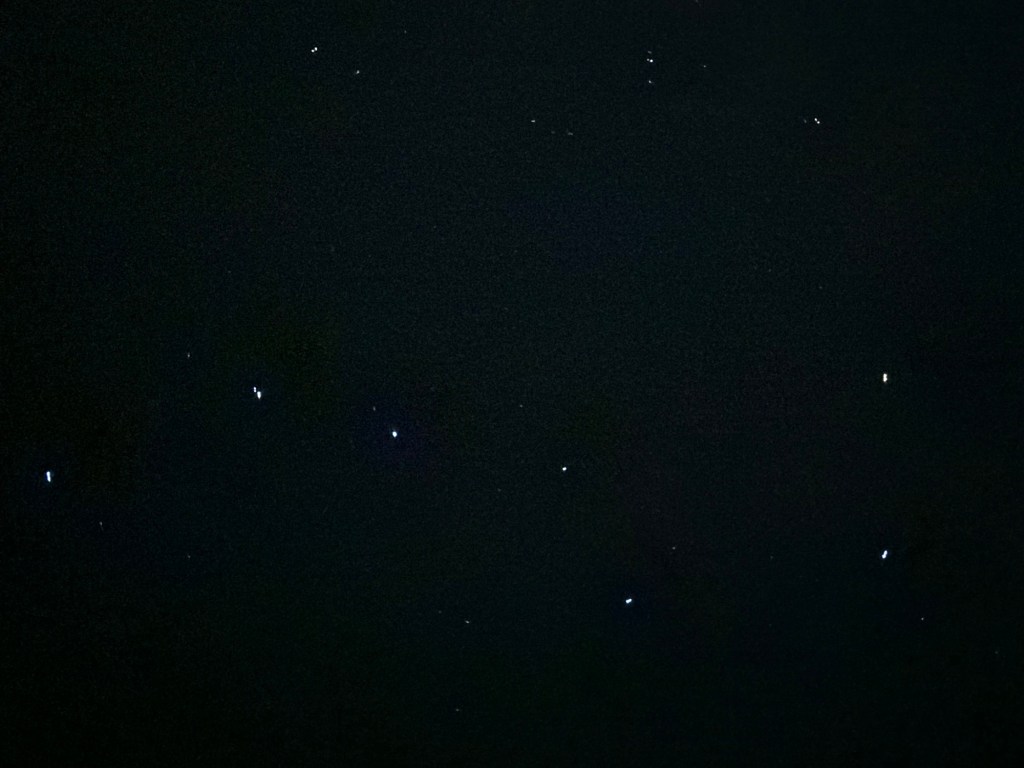 So we decided driving up to the Blue Ridge Parkway was our best bet, to one of the overlooks. Guess what? The Parkway was closed. So we turned around and went to a previous overlook. We waited and waited – and of course met some new friends. Much to my disappointment no dancing beautiful lights in the sky. However, learning more about my iPhone camera I was able to take my very own picture of the most famous constellation: